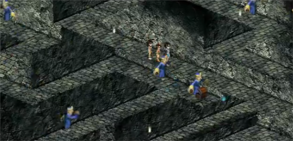 走至出口处剧情,苏媚加入,走到至天师陵寝门口剧情,进入后剧情,走到石壁前剧情,剧情后开始迷宫,每个迷宫尽头都有石板,将其打败后回到石壁处剧情,四块石板集齐后剧情,剧情后苏媚离队,从大殿破洞处离开陵寝到达陵寝外山路,调查尽头藤蔓后来到十里坡顶。(PS城郊山路上的青铜花先别忙着吃,以后有用,还有,队员离队时会把身上的装备也带走,所以如果有什么贵重的装备,一定要在队员离队前换下来。)