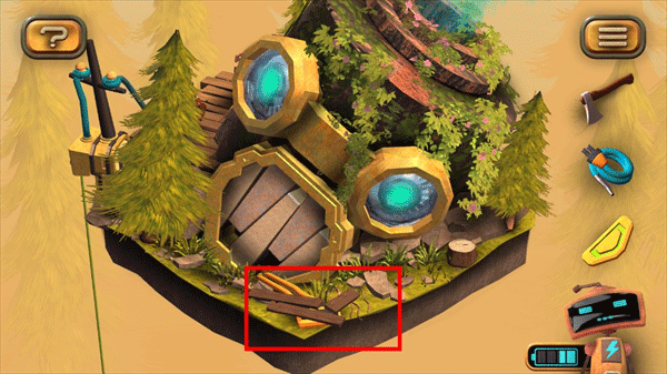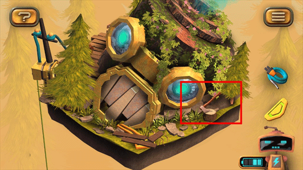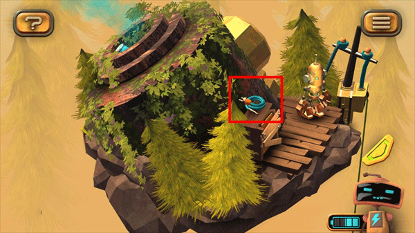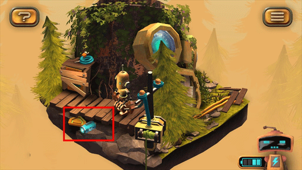 1、在图左下角发现一个电池,点击收集后,机器人增加电量;
